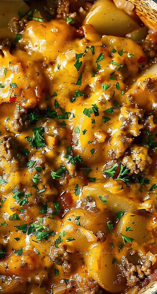 Comfort food takes on a whole new meaning with this mouthwatering cheesy one pot beef and potatoes recipe that promises to satisfy even the hungriest appetites.