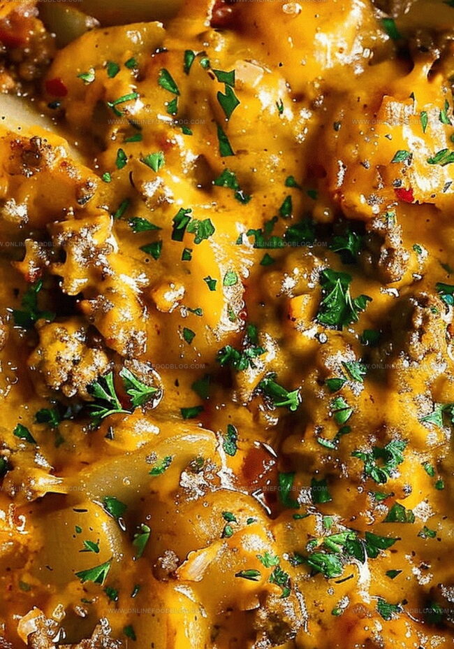 Quick skillet with cheesy one pot beef and potatoes creates comfort on dinner plates. Hearty ingredients blend seamlessly, promising rich flavors that welcome hungry diners to savor each satisfying bite.