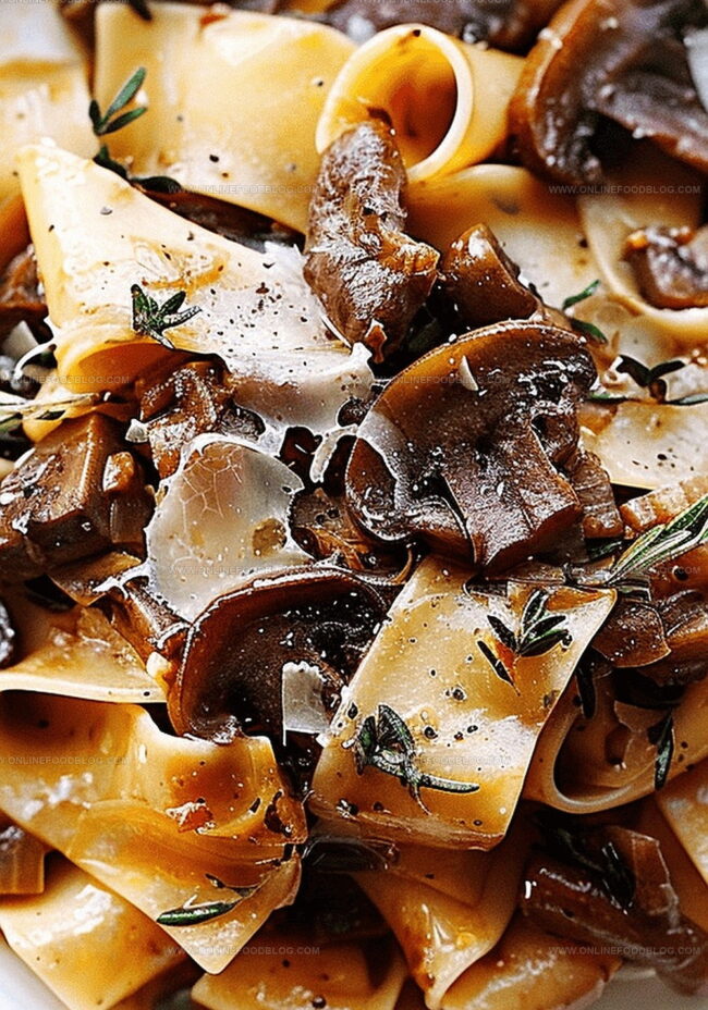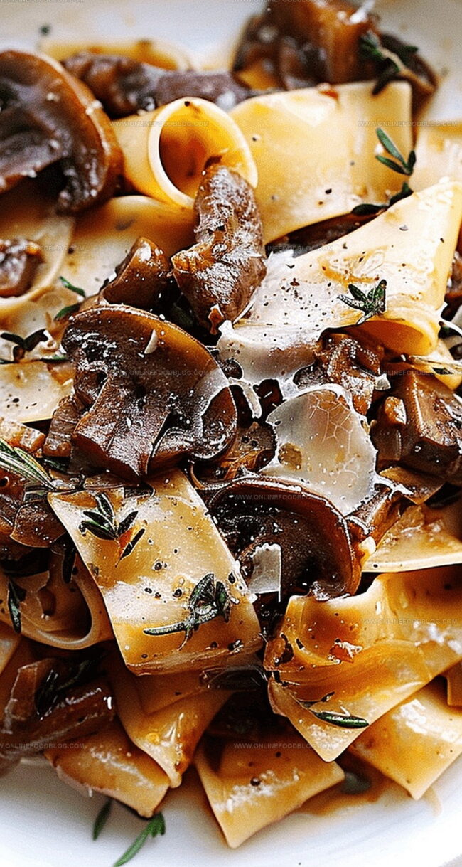 Meaty portobello mushrooms create a luxurious sauce that clings perfectly to wide, silky pasta ribbons.