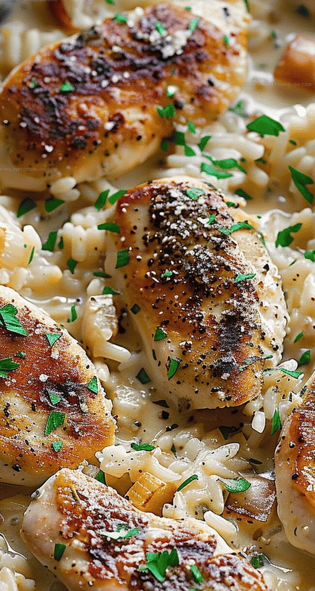 Sizzling One-Pan Creamy Parmesan Chicken & Rice Recipe