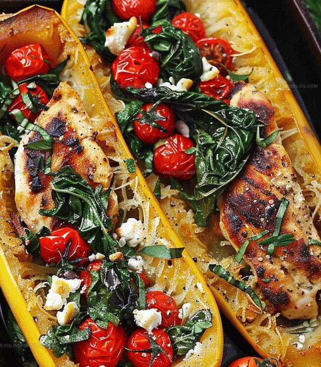 Homemade Spaghetti Squash Chicken Delight combines roasted squash strands with tender chicken in a Mediterranean-inspired sauce. Mediterranean herbs and fresh ingredients create a nutritious, flavorful meal perfect for healthy dinner seekers.