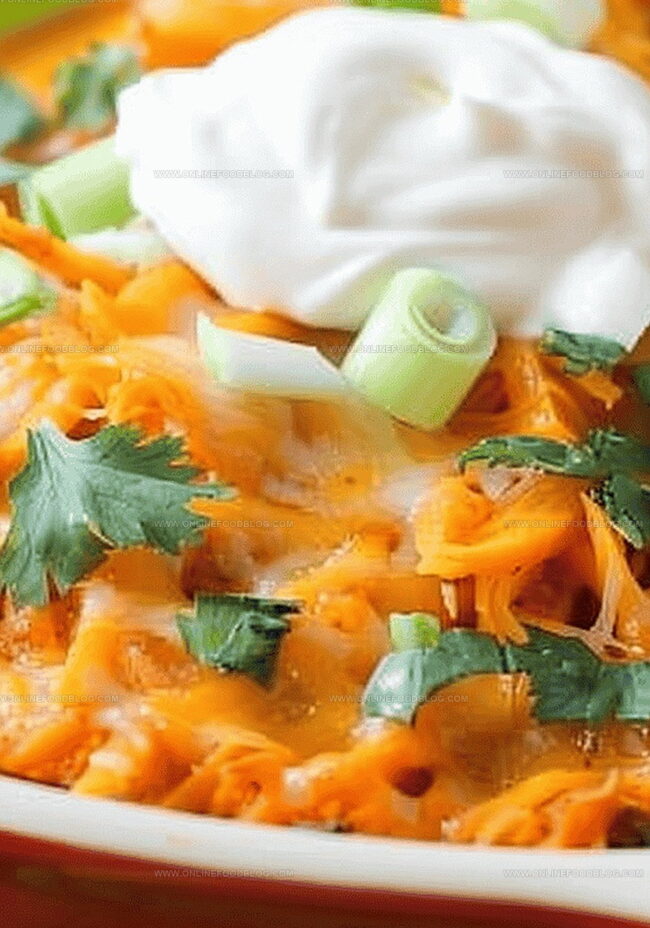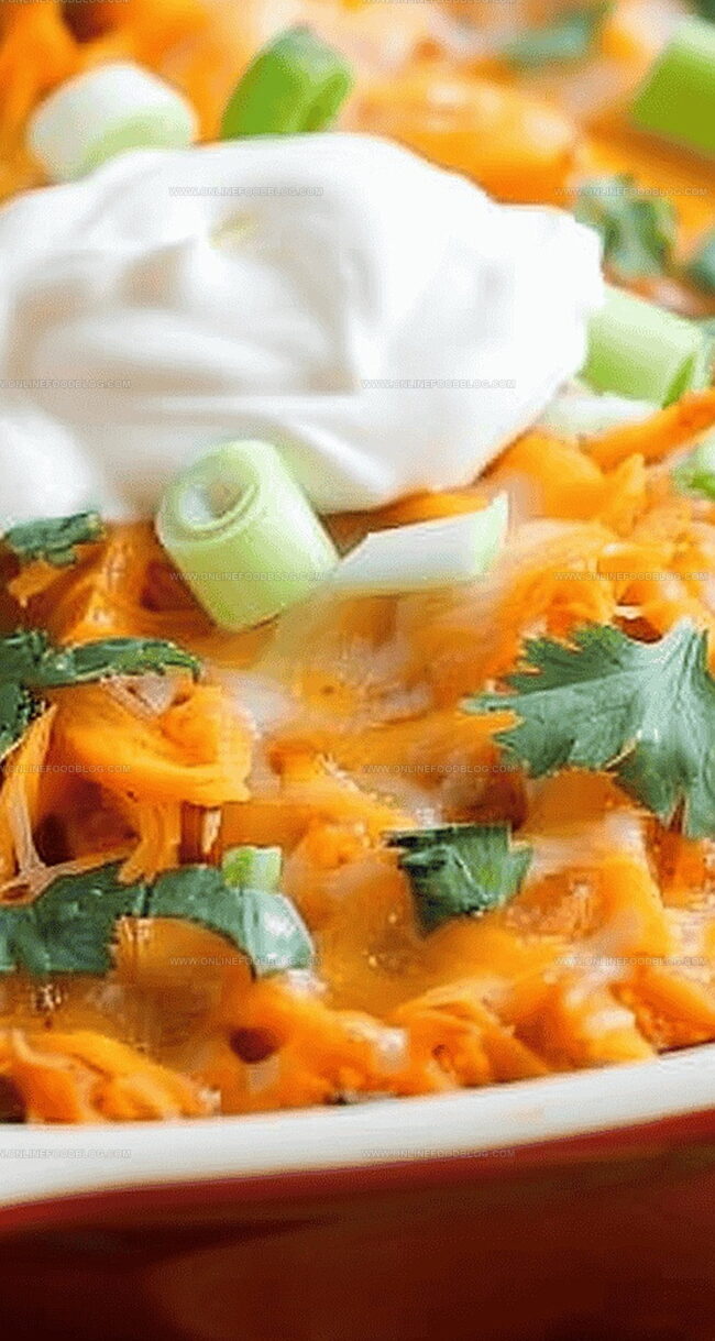 Finishing Touches: Allow the casserole to rest for several minutes after removing from the oven, then embellish with fresh green onions, creamy avocado slices, chopped parsley, and a dollop of sour cream to enhance visual appeal and complement the dish’s robust flavors.
