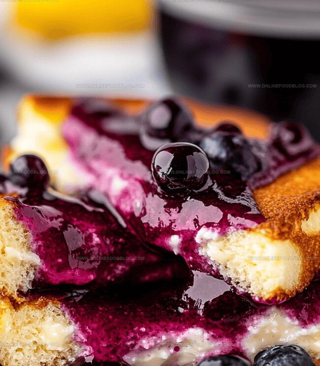 Drizzle the vibrant blueberry sauce over the French toast. The deep purple sauce will cascade over the golden bread, creating a breakfast that looks as incredible as it tastes. Serve immediately and watch faces light up with pure joy.