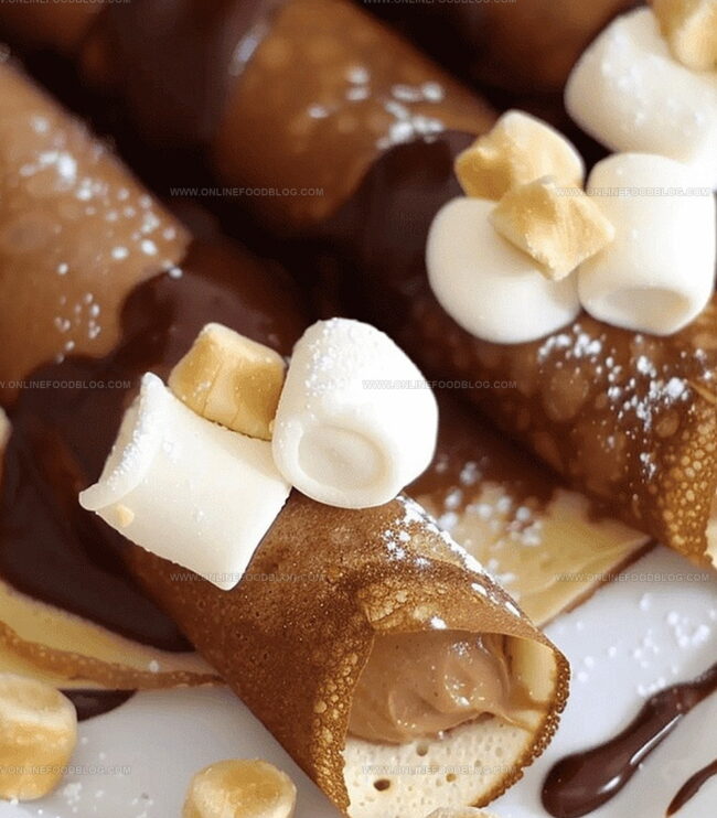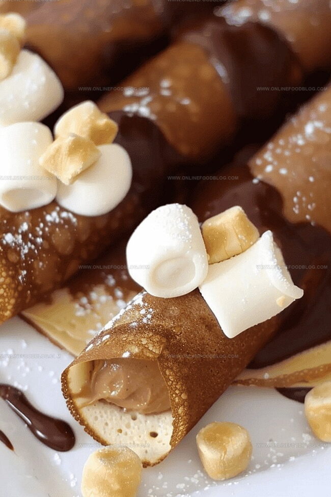- Crepe Assembly: Spread or pipe the peanut butter marshmallow filling along the center of each chocolate crepe. Roll into a compact cylinder approximately 2.5 centimeters in diameter.