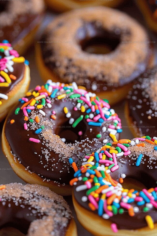 Dress up your donuts with your favorite glaze or topping. For that classic shine, try a double-dip technique with a brief pause between coatings.