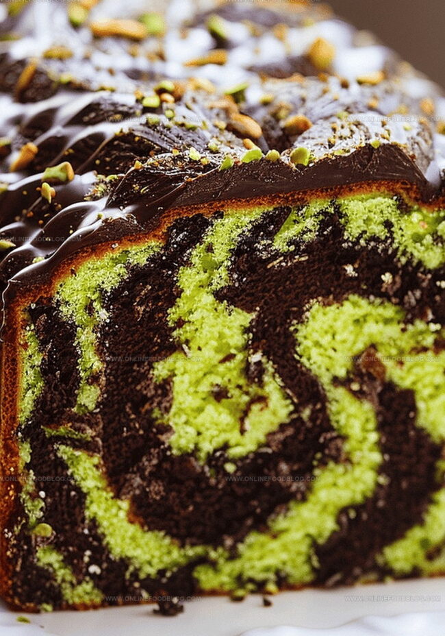Elegant marble cake blends rich pistachio and chocolate swirls into a delightful dessert. Moist layers create a sophisticated profile that delights palates with balanced sweetness and nutty undertones.