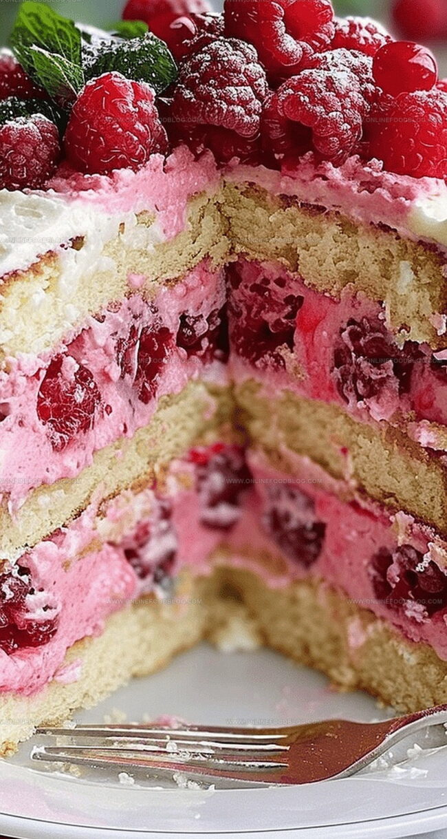 Tea Time Indulgence: Serve thin slices alongside afternoon tea or coffee, complementing the cake’s delicate raspberry flavors with classic tea selections like Earl Grey or chamomile for a sophisticated sweet break.