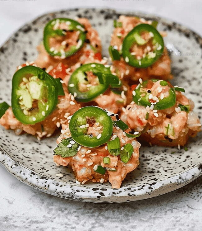 Crispy rice topped with zesty spicy tuna brings Japanese fusion magic straight to home kitchens. Crunchy rice layers create perfect contrast with silky, spice-infused raw tuna, delivering restaurant-quality flavor that will satisfy immediate sushi cravings.