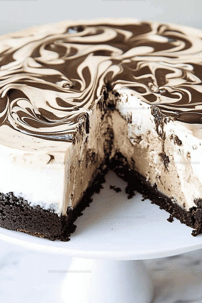 Add a dreamy vanilla ice cream layer that creates visual and taste excitement. The playful chocolate fudge swirls bring extra magic to the dessert, making each slice a work of art.