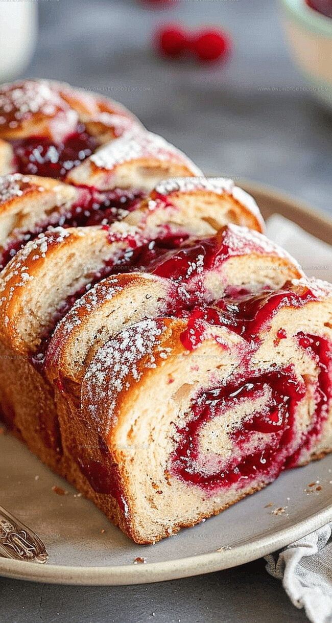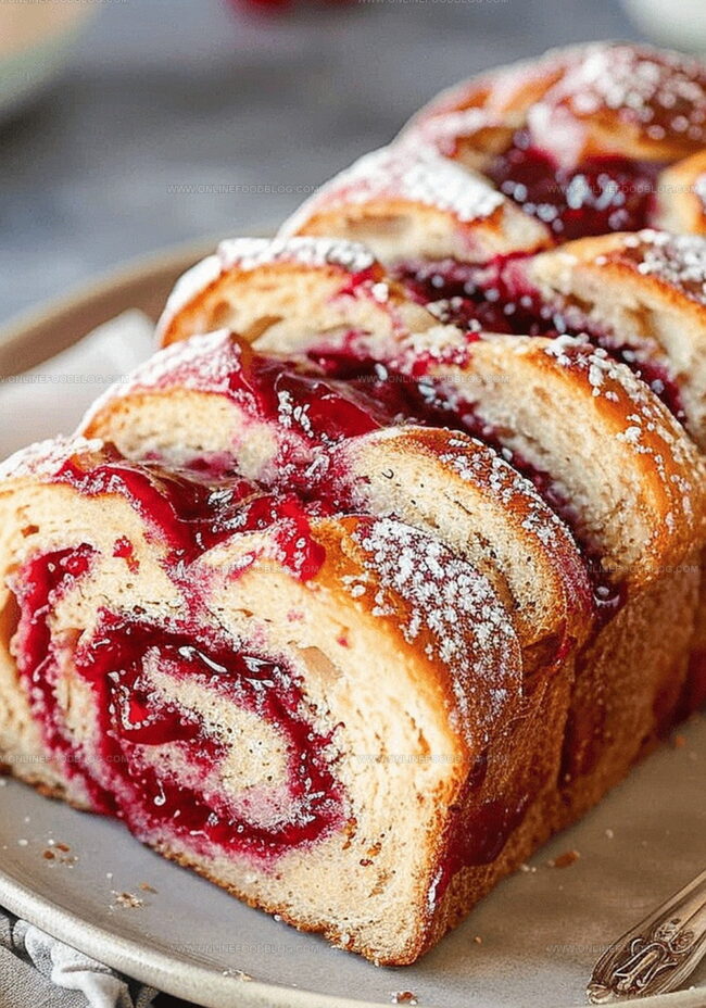 Polish babka weaves sweet raspberry jam through rich, buttery swirls of enriched dough, creating a mesmerizing dessert that celebrates classic Eastern European baking. Generous ribbons of fruity preserve wind through tender layers, offering pure comfort with each delicious slice.