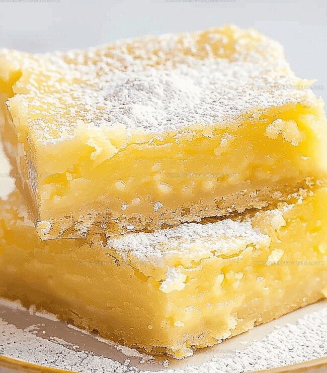 - Before serving, dust the chilled bars with an additional light layer of powdered sugar, creating an elegant, finished appearance.