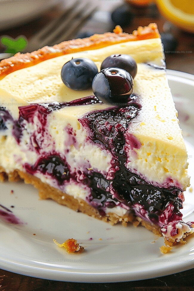 Lemon blueberry swirl cheesecake dances on the edge of dessert perfection, promising a tantalizing blend of bright citrus and sweet berries.