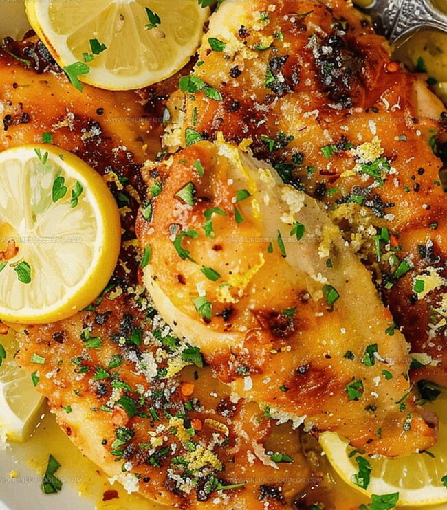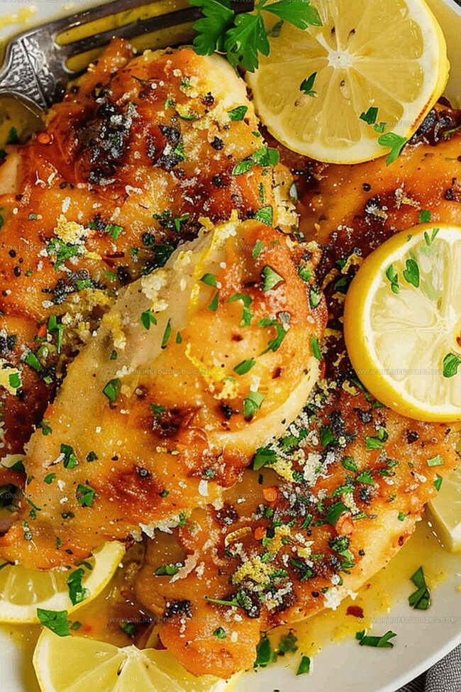 - Transfer cooked chicken to serving plates, generously drizzle with warm lemon butter sauce. Garnish with fresh lemon slices and chopped parsley for added brightness and visual appeal.