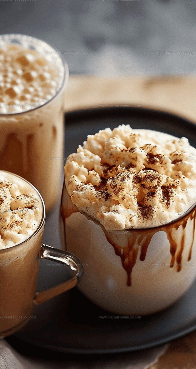 - Cream and Garnish: Top the drink with a billowing cloud of freshly whipped cream, then playfully scatter crunchy caramel popcorn across the surface for a delightful textural contrast, finishing with an elegant caramel sauce drizzle and a light dusting of ground nutmeg.
