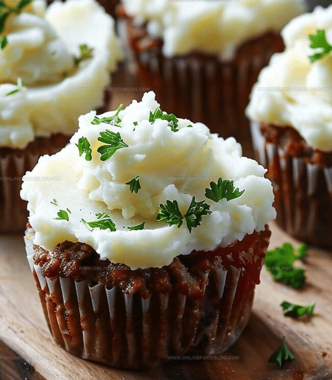 Savory Meatloaf Cupcakes bring classic comfort cuisine to playful new heights with whipped potato frosting. Hearty ground beef mingles with herbs and spices, crowned by silky mashed potatoes that make each bite a delightful culinary surprise you’ll crave.