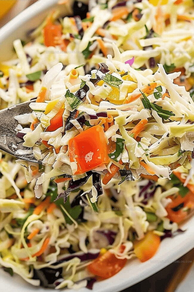 Mediterranean Coleslaw brings refreshing zest to classic summer sides with crisp cabbage, colorful bell peppers, and tangy feta cheese. Herb-infused olive oil dressing and briny kalamata olives elevate this salad, offering you a delightful taste of Mediterranean coastal cuisine.