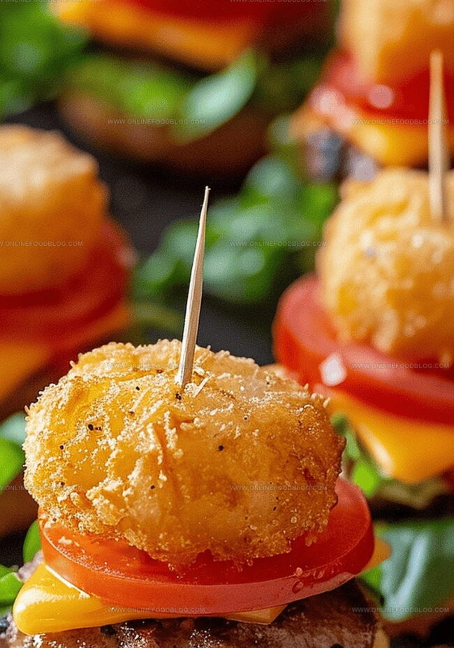 Mini tater tot sliders bring hearty comfort to party appetizers with crispy potato bases and juicy beef patties. Quick to prepare and irresistibly delicious, these bite-sized treats will delight guests at any gathering.