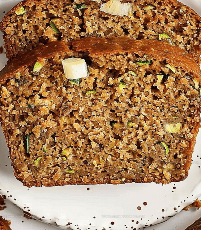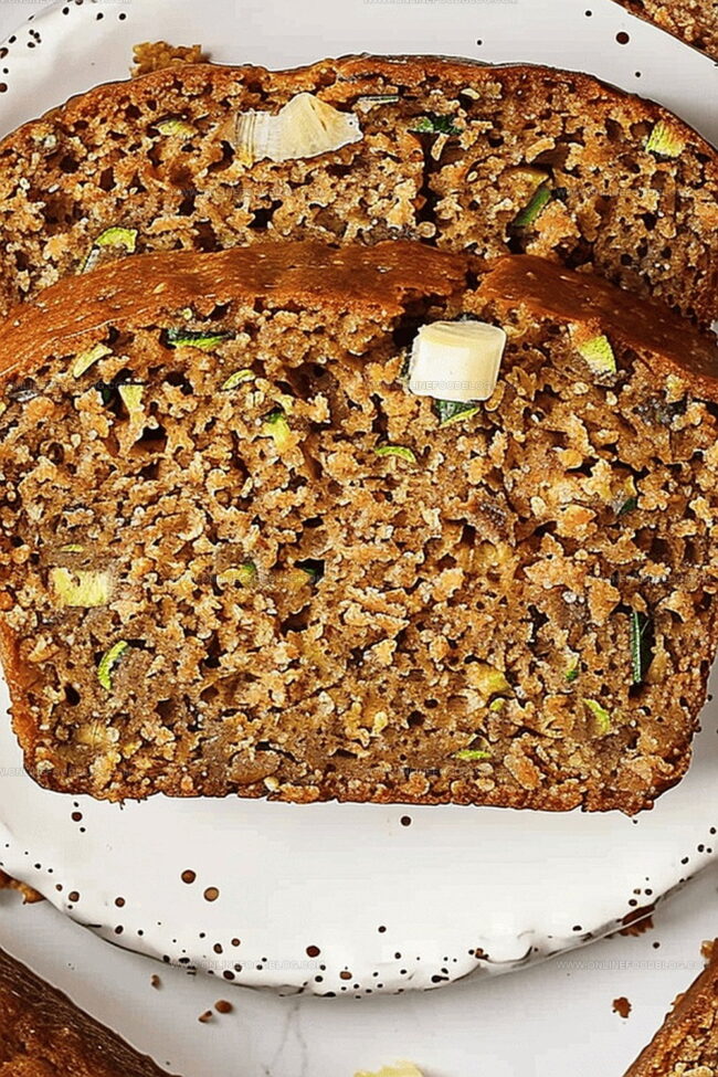 Serve Warm with Butter: Slice the zucchini banana bread while it’s still slightly warm and spread a thin layer of creamy butter for a rich, indulgent treat that melts perfectly into the soft bread.