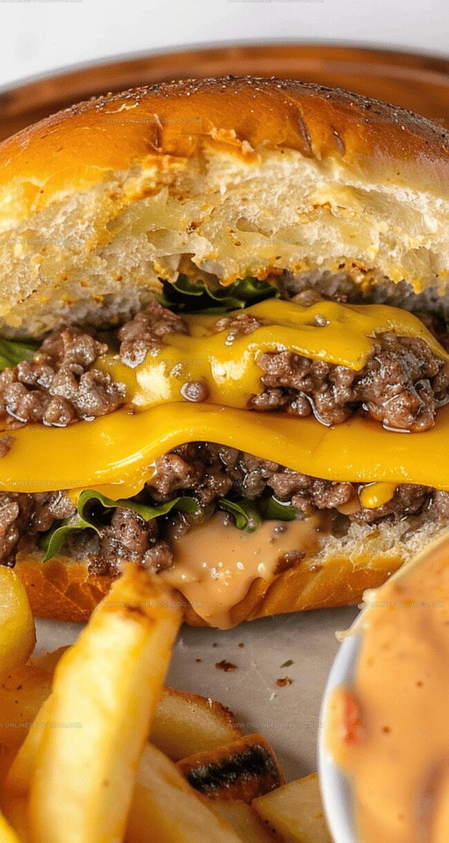 Sidekick Sensations: Pair with crispy waffle fries, tangy coleslaw, or a zesty pickle spear to complement the rich, cheesy burger and add textural contrast.