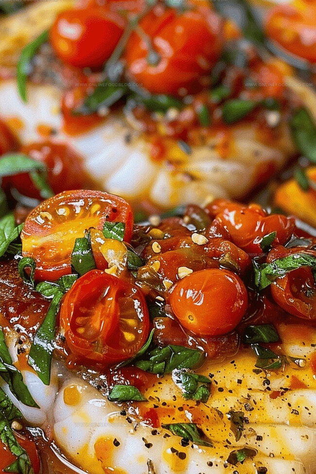 - Gently ladle the prepared tomato basil sauce over the perfectly seared cod, warming the dish for an additional minute.