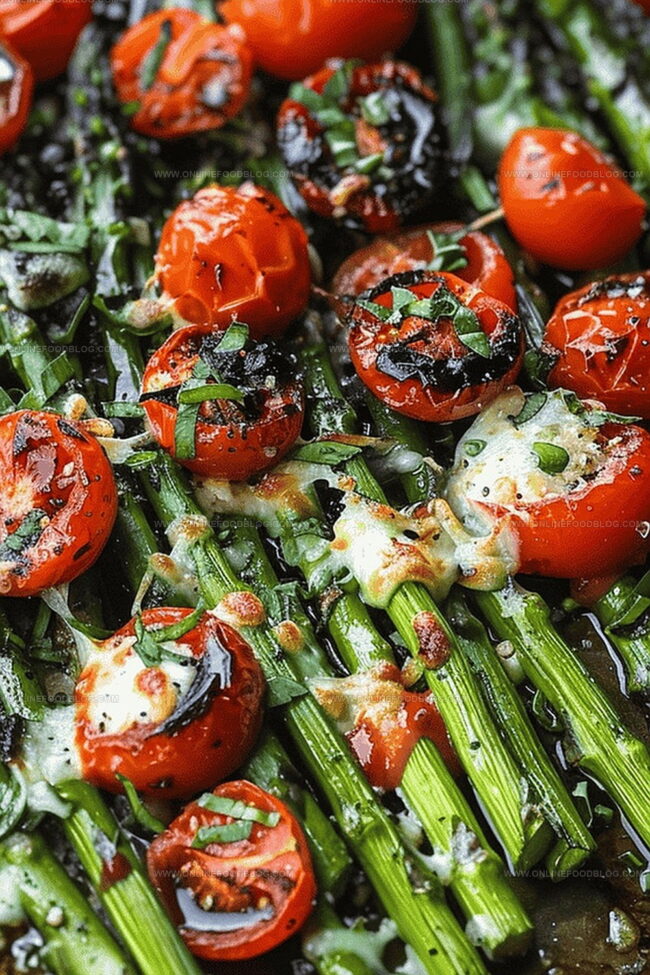 - Slide the baking sheet into the preheated oven and roast for 15-20 minutes, monitoring until asparagus becomes tender, tomatoes soften, and cheese turns golden and slightly crispy.