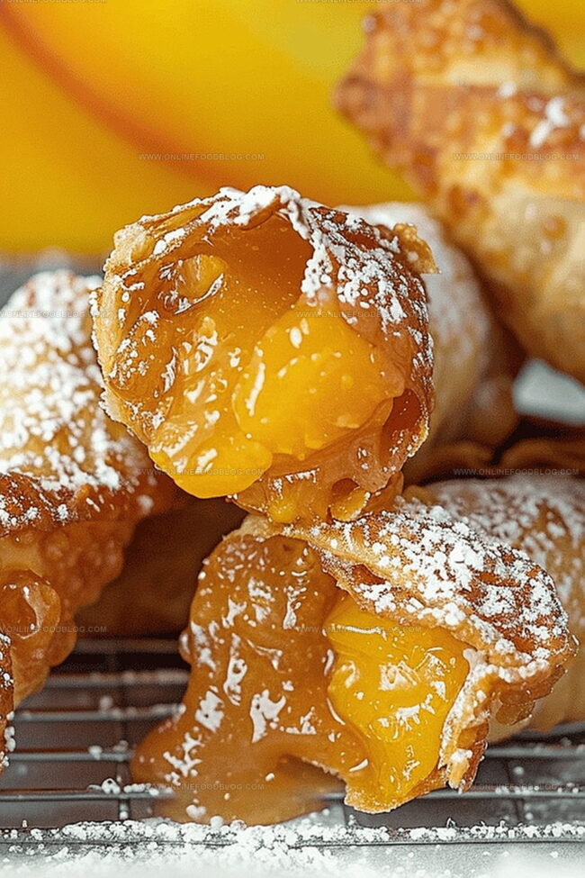 Optional: Dust the crispy egg rolls with a light sprinkle of powdered sugar. Serve immediately with Vanilla Bean Dipping Sauce for an extra layer of deliciousness.