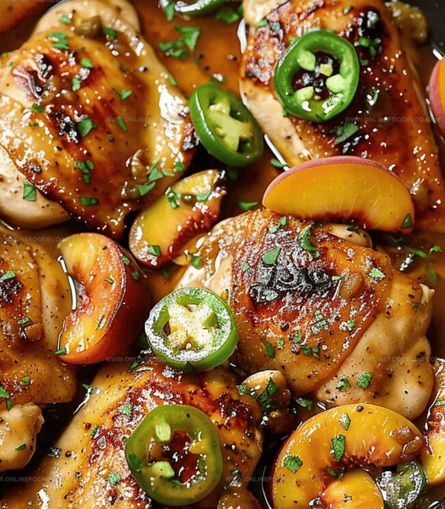 Succulent Peach Glazed Chicken with Jalapeños merges sweet Georgia peaches and spicy peppers into a bold Southern-inspired dish. Juicy chicken breasts shine with a balanced glaze that delivers complex flavors bridging heat and fruity richness for a memorable meal you’ll savor.