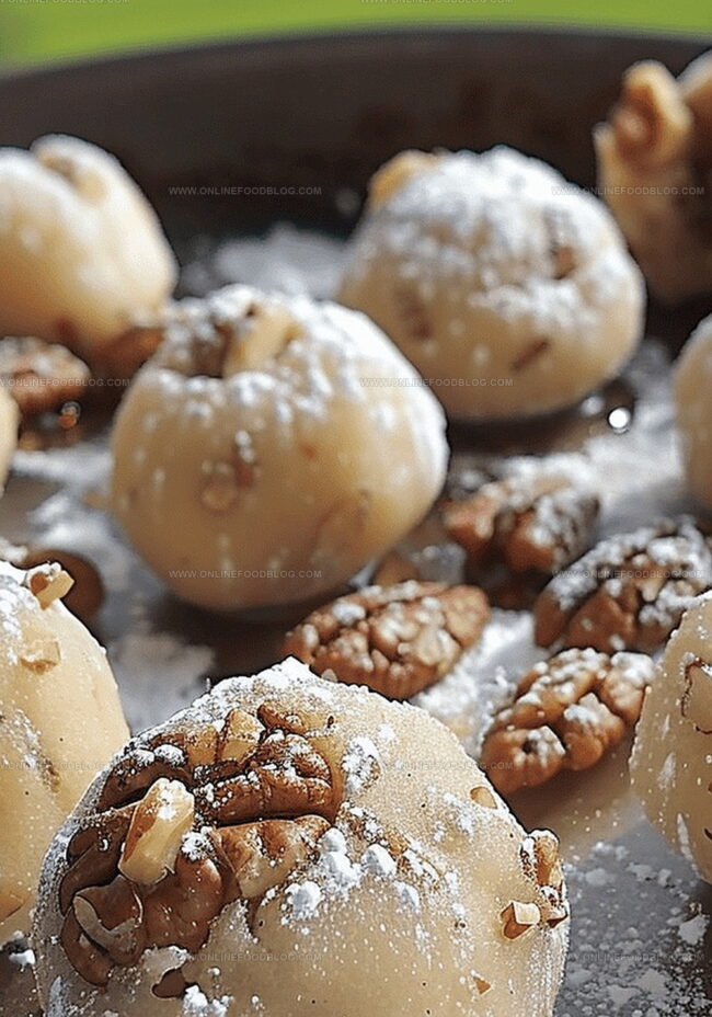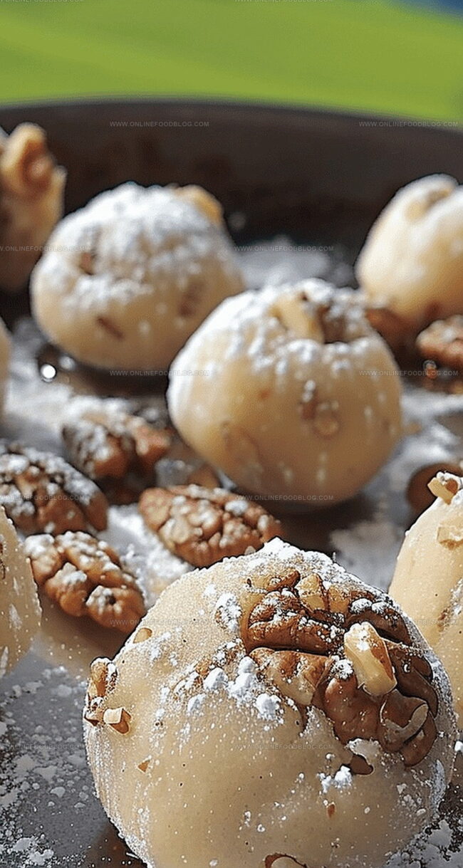 - Once cooled, generously dust the pecan bites with powdered sugar, creating an elegant, sweet finish that enhances their visual and flavor profile.