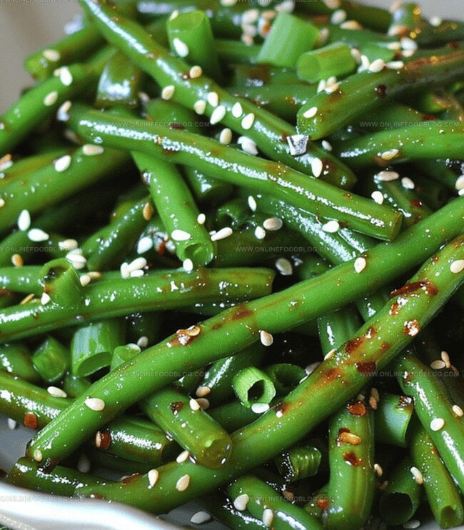 - Remove the skillet from heat and transfer the glistening green beans to a serving plate. Optionally, sprinkle toasted sesame seeds across the top for added texture and visual appeal.
