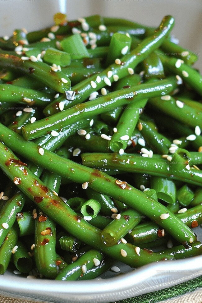 Transfer the saucy green beans to a plate or bowl. Sprinkle with sesame seeds if you’re feeling fancy. Dig in and savor the spicy, tangy goodness!