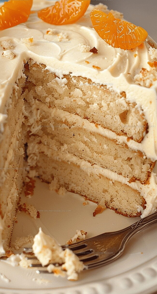 - For an optional decorative touch, garnish the cake with fresh strawberries, additional mandarin orange segments, or extra pineapple pieces, arranging them artfully across the top and sides of the frosted cake.