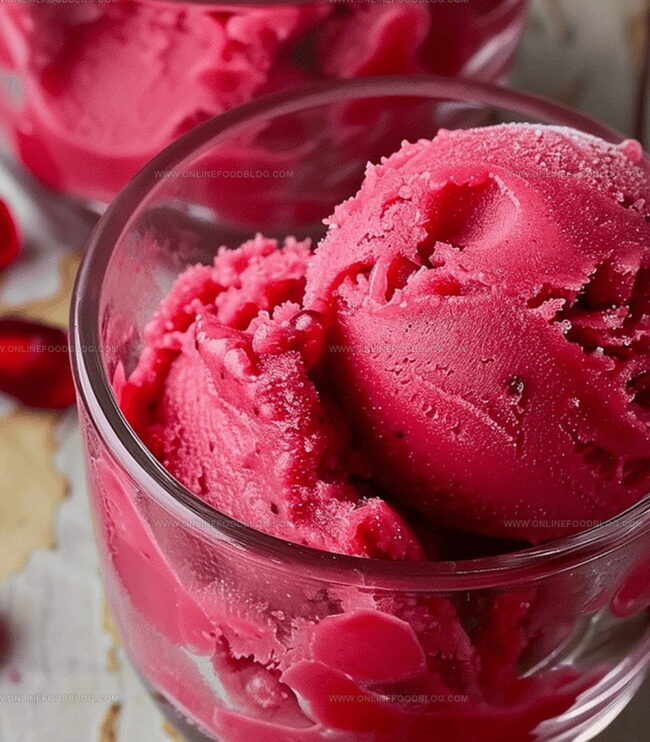 Pomegranate sorbet bursts with vibrant, jewel-toned brilliance that captivates taste buds and delights the senses.