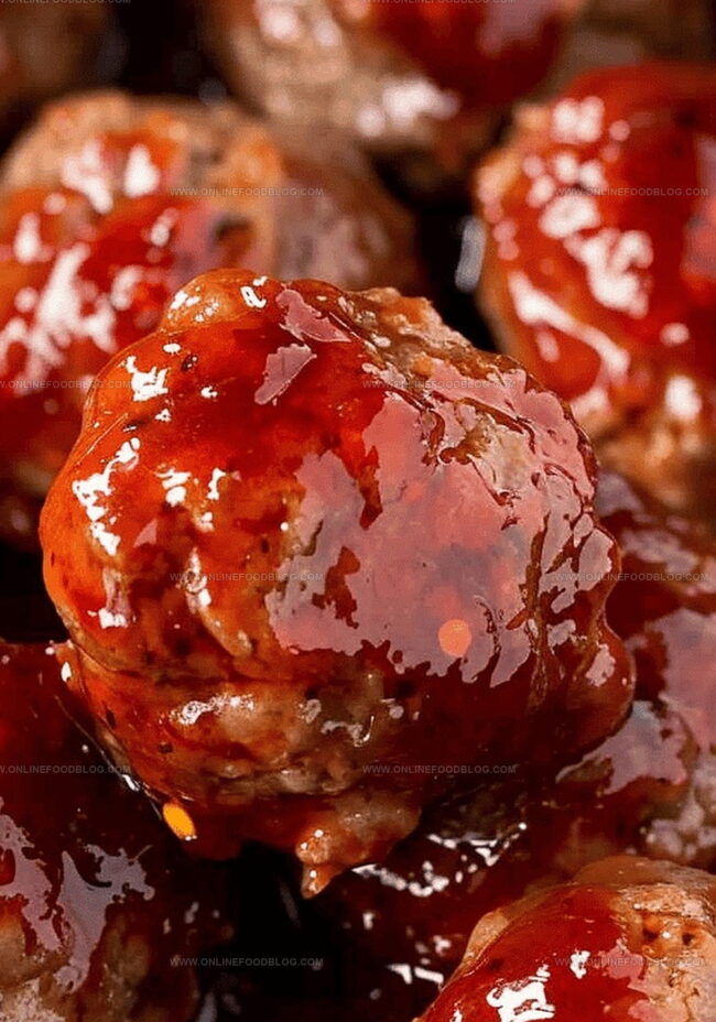 After cooking time is complete, softly stir meatballs to redistribute the glossy glaze. Serve immediately while warm and enjoy the sweet-spicy combination that makes these meatballs irresistible.