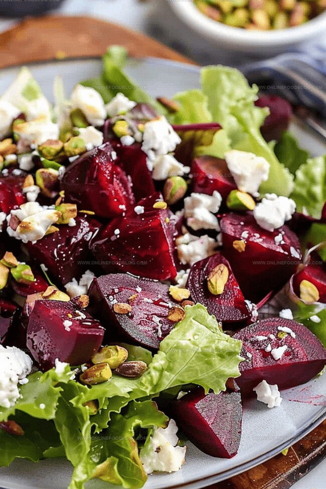 - Layering dressed greens with roasted beets, creamy goat cheese, and crunchy pistachios creates a balanced salad with contrasting textures and flavors.