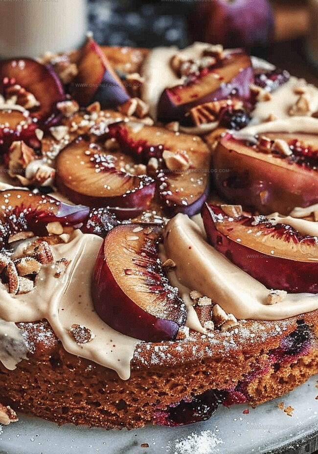 Summer’s bounty bursts with sweet plum flavors in this vibrant lemon cashew icing healthy plum cake that promises pure delight.