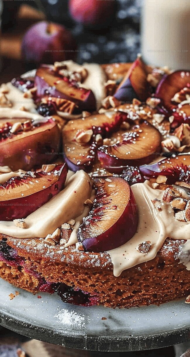 cashew icing adds a creamy, tangy finish that complements the plums’ natural sweetness.
