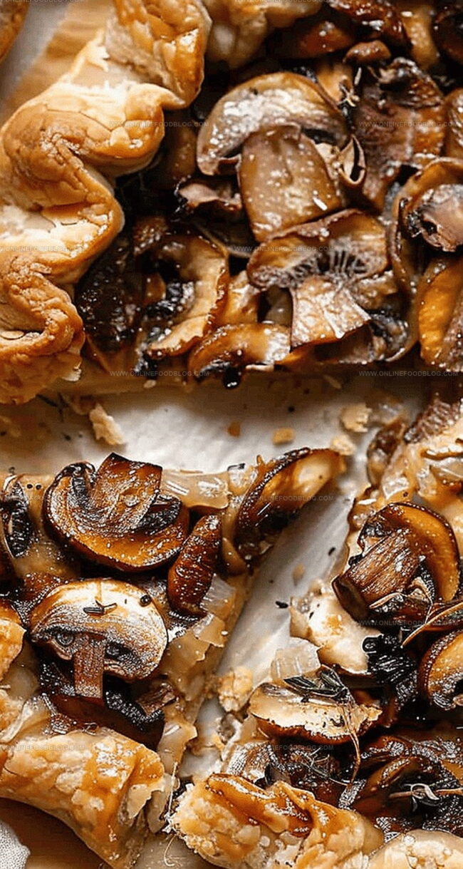 Rustic pastry edges fold delicately around earthy, roasted mushrooms that melt with rich herbs and tangy cheese.