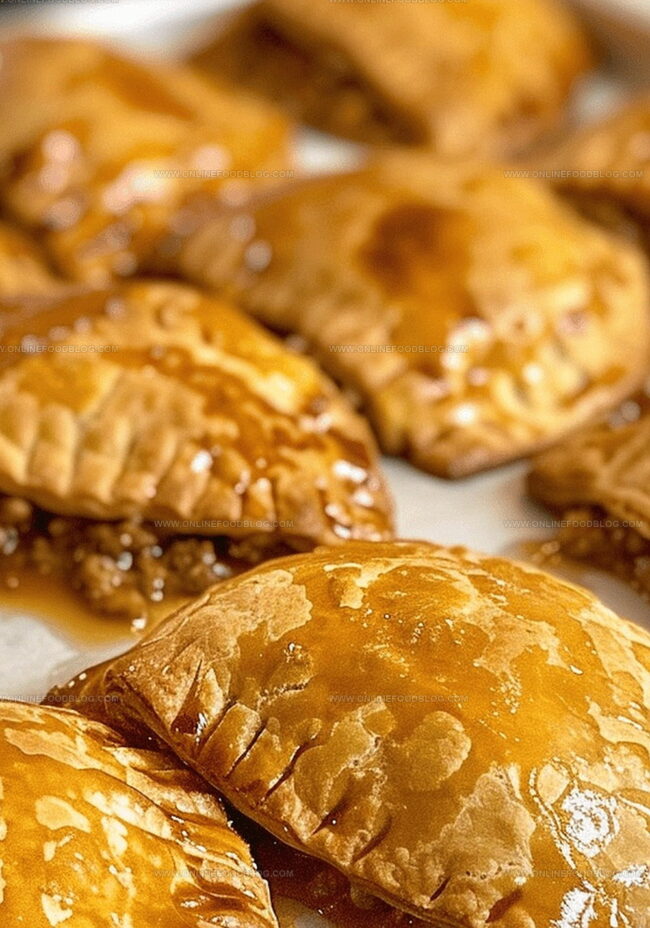 Delectable Savory Beef & Cheddar Pastries showcase hearty ground beef and sharp cheddar nestled in flaky, golden puff pastry. Homemade comfort embraces kitchen creativity with these irresistible hand-held delights that invite you to savor each rich, satisfying bite.
