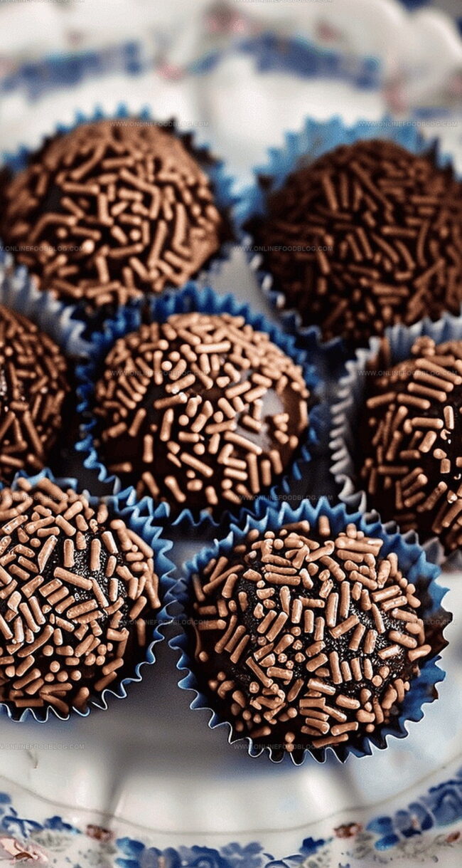 Brazilian chocolate truffles like brigadeiro delight palates with rich cocoa and condensed milk flavors. Sweet chocolate spheres rolled in sprinkles promise a simple yet elegant dessert experience for chocolate enthusiasts.