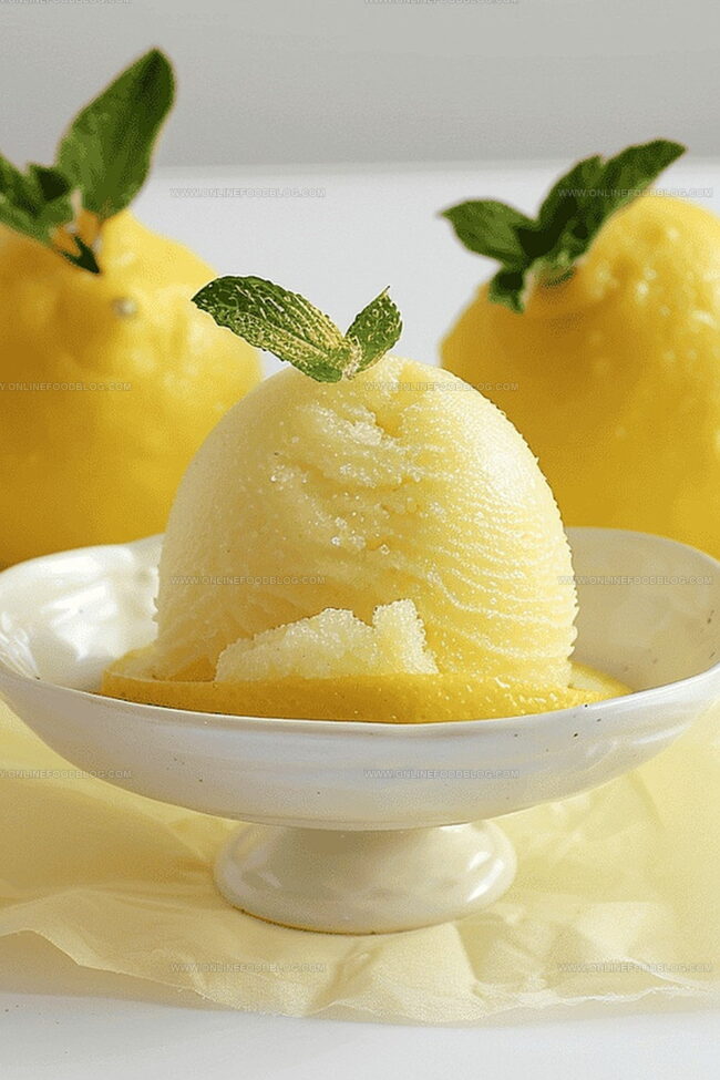 Scoop the frosty lemon sorbet into elegant glasses or bowls. This zesty treat offers a cool, tangy escape that refreshes and delights with every spoonful, perfect for hot days or as a palate-cleansing dessert.