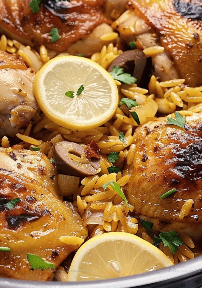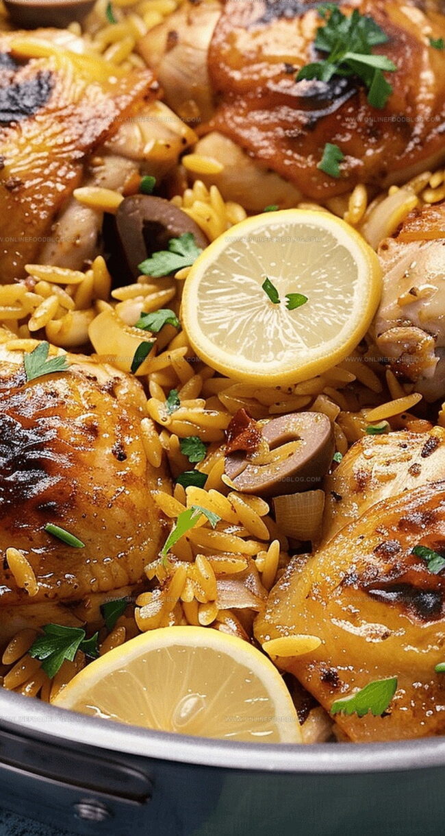 - One-Pan Assembly: Carefully nestle chicken thighs back into the orzo, partially submerging them in the cooking liquid for even heat distribution.