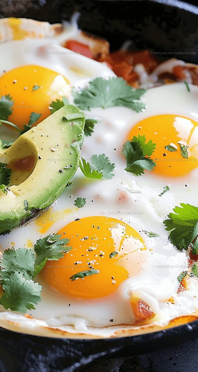 - Finishing Touch: Slide skillets onto plates, garnish with avocado slices and chopped cilantro, and serve with additional warm tomato sauce on the side.