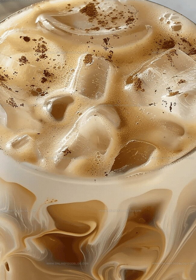 Start by prepping your glass with frozen coffee cubes, creating a cool base that won’t dilute the drink’s rich flavor.