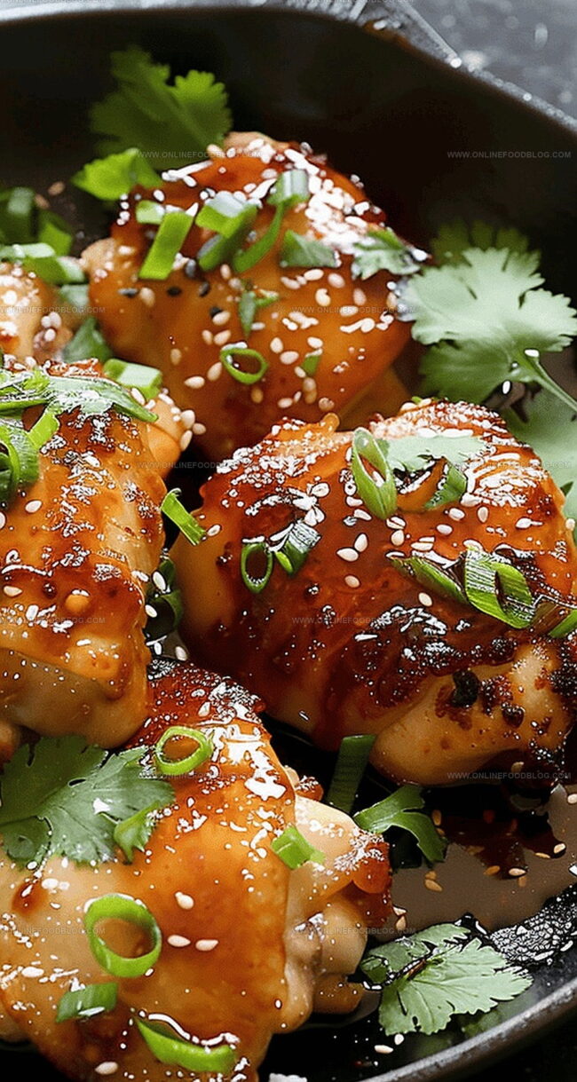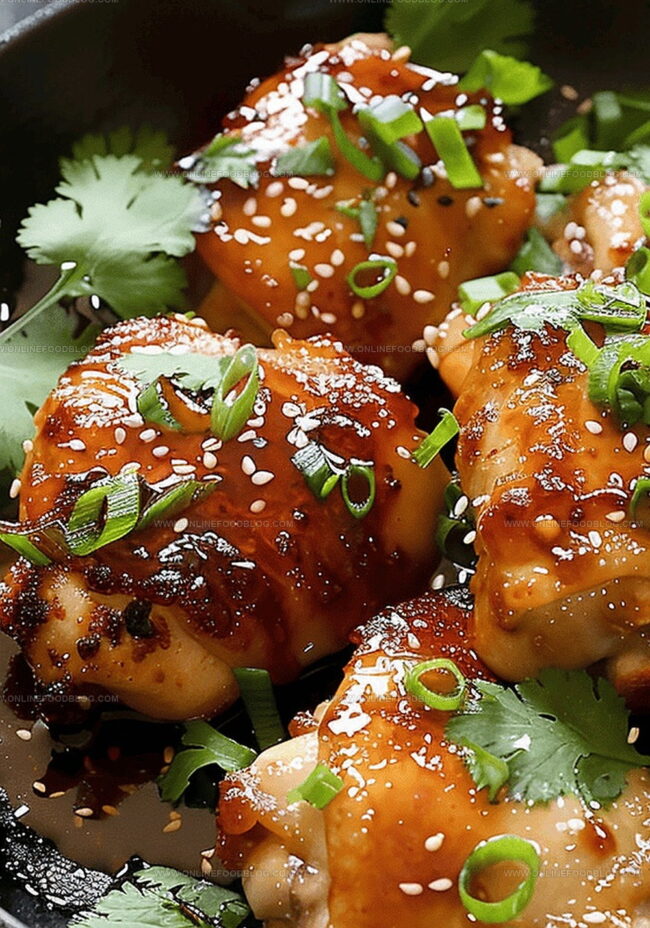 Serving: Transfer glazed chicken to plates, drizzling remaining sauce. Garnish with fresh cilantro, sliced green onions, and toasted sesame seeds for a vibrant, textural presentation.