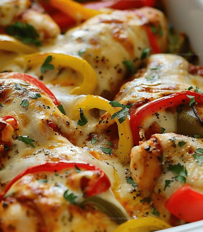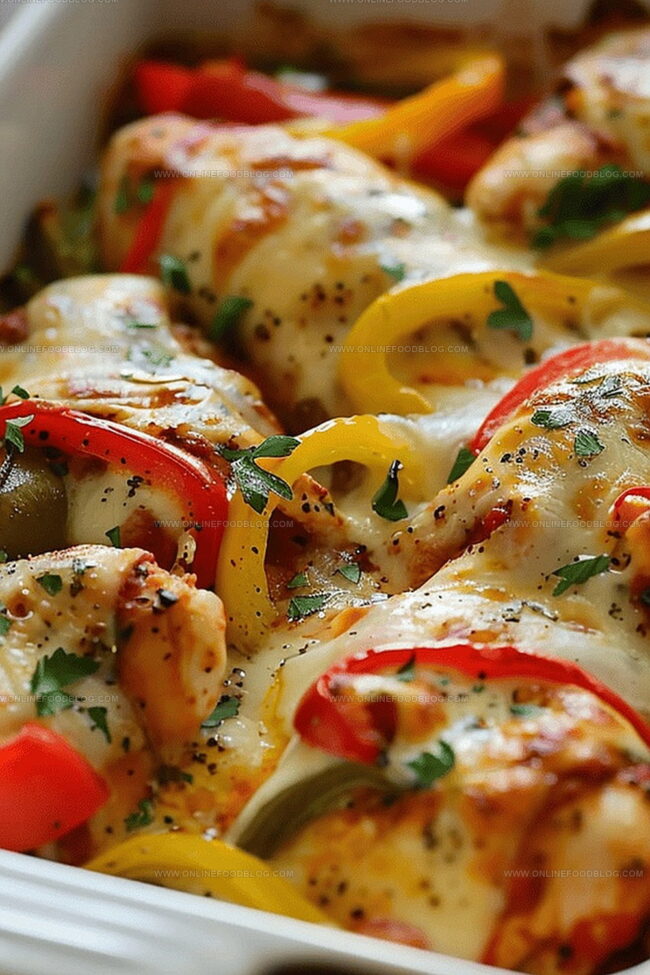 Tender chicken nestles among vibrant bell peppers, promising a meal that sparks excitement at the table.