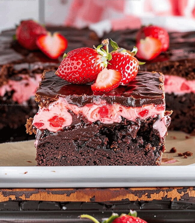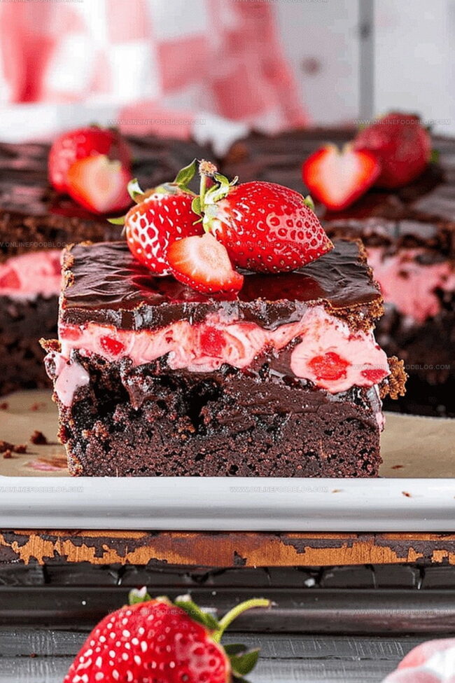 Luscious strawberry brownies blend rich chocolate with fruity sweetness, creating a delightful dessert that dances between intense cocoa and fresh berry notes. Chocolate lovers will savor this irresistible treat that promises pure indulgence in each delectable bite.