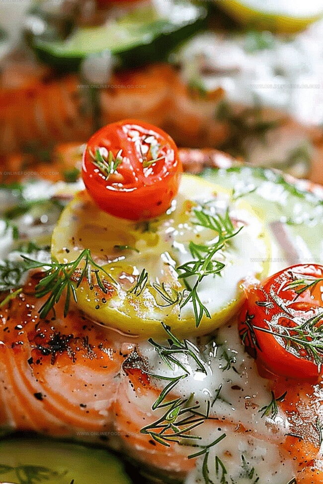 - Plating and Garnishing: Transfer salmon to serving plates, lavishly adorning with prepared dill sauce and salsa. Elevate the dish’s vibrancy by drizzling additional freshly squeezed lemon juice as a final flourish.