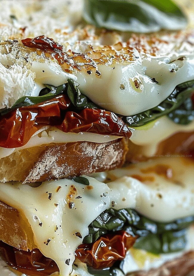 - Layer ingredients strategically: cheese first, then sun-dried tomatoes and spinach, ensuring even distribution and preventing sandwich filling from sliding.