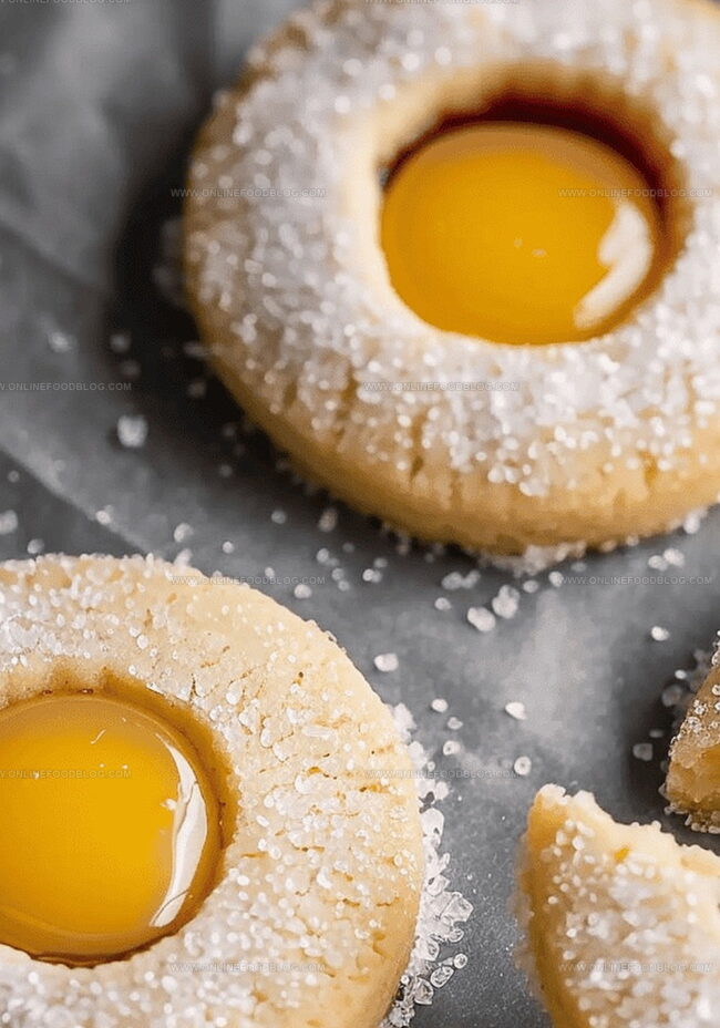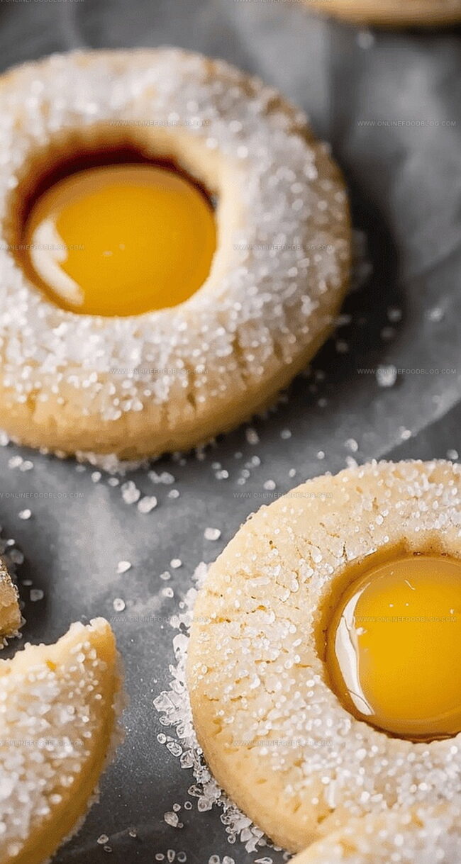 Lovingly spread the zesty marmalade on cookie bases, then crown with the sugar-dusted tops. Create a delightful sandwich that promises a burst of citrusy joy with every bite.