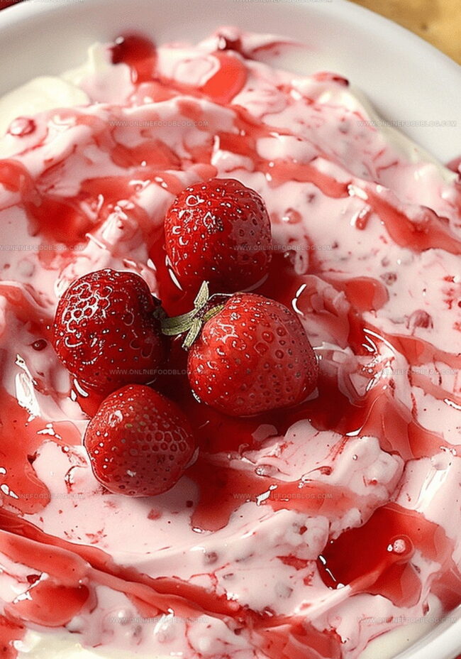 - Decorative Finish: Artfully drizzle strawberry jam across the surface, using a knife to create mesmerizing marbled swirls that intertwine the vibrant crimson jam with the pristine cream base.